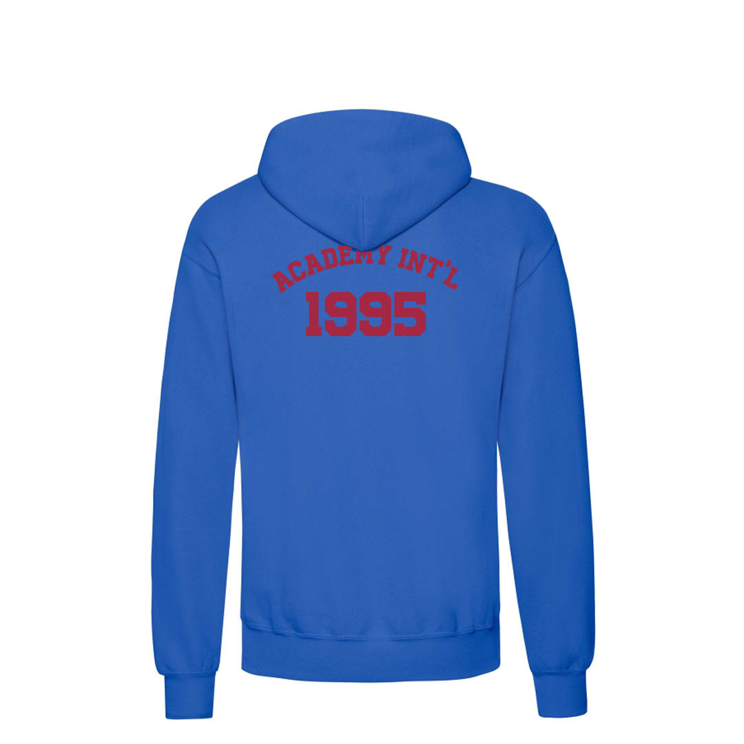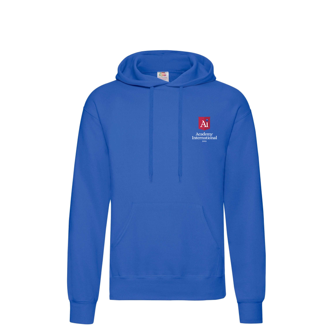 Bluza dresowa z kapturem z logo szkoły.