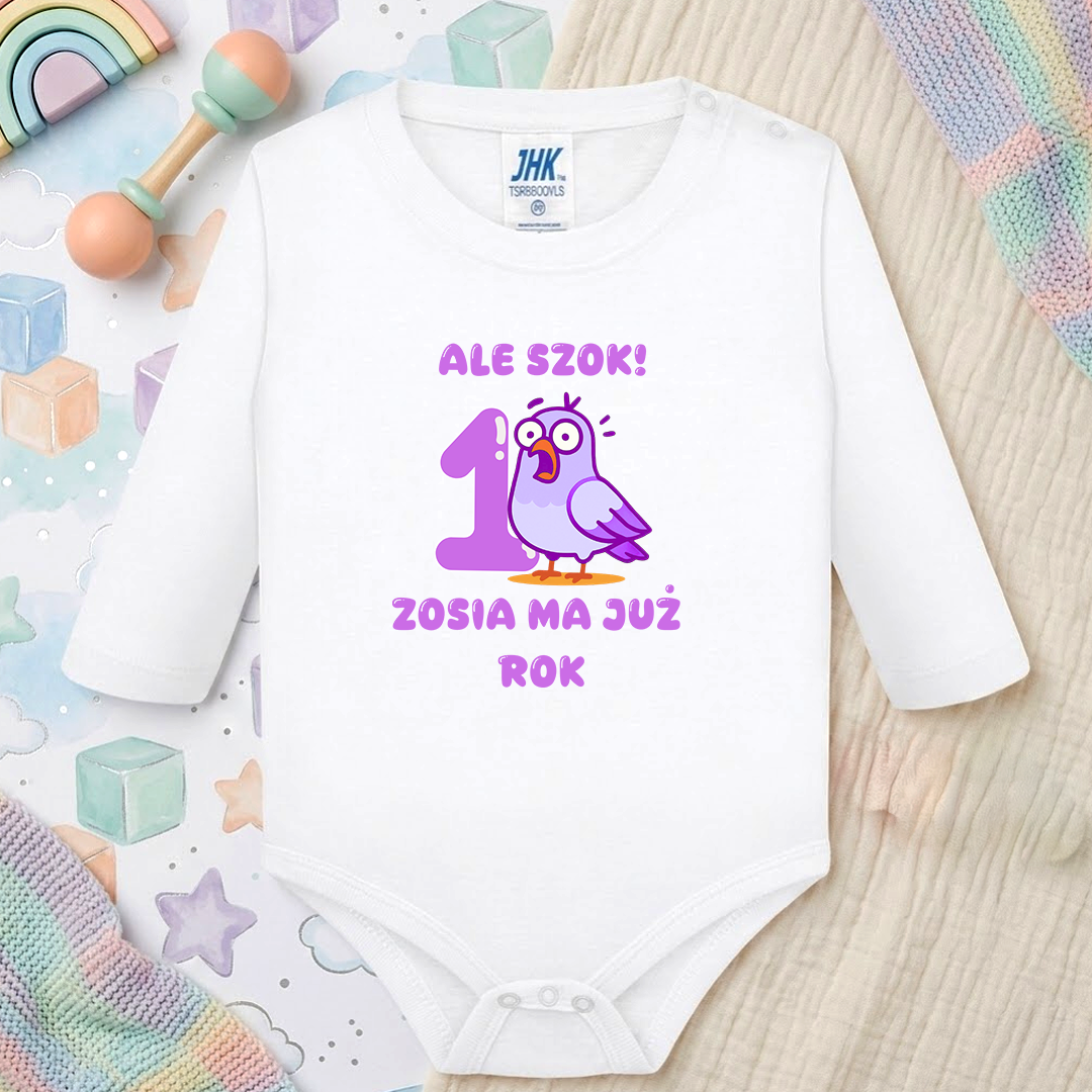 Body dziecięce unisex z krótkim rękawem, wykonane w 100% z bawełny z nadrukiem.