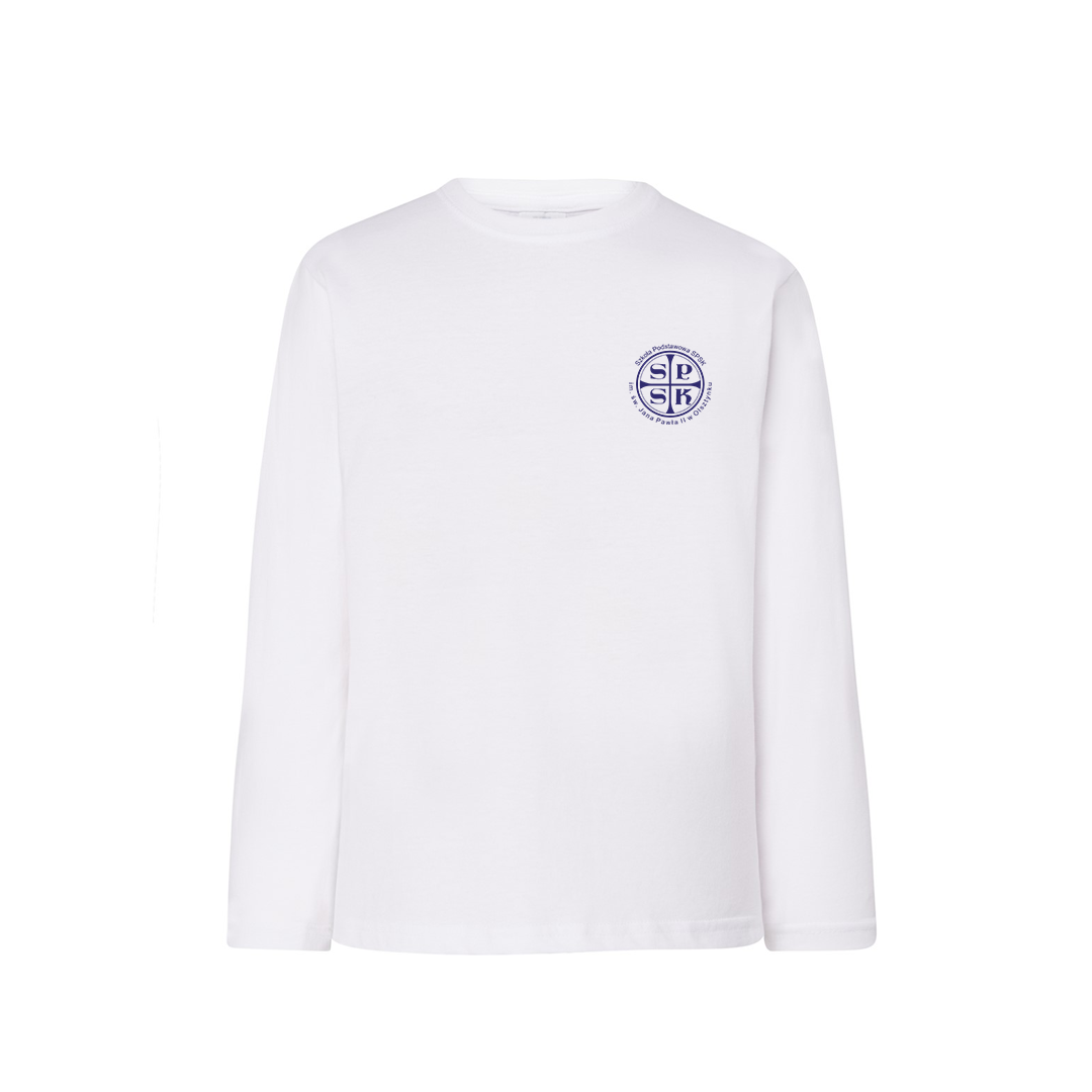 Koszulka szkolna z długim rękawem w rozmiarze  5/6 - 5XL to praktyczny element mundurka szkolnego. Uszyta ze 100% bawełny, jest lekka, miękka i wygodna w noszeniu na co dzień. Dopasowany fason, elastyczny ściągacz z lycrą oraz trwały nadruk logo zapewniają schludny wygląd i komfort użytkowania. Zalecane pranie w 30°C, bez suszenia w suszarce. Idealny wybór do szkoły każdego dnia.
